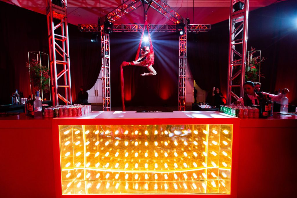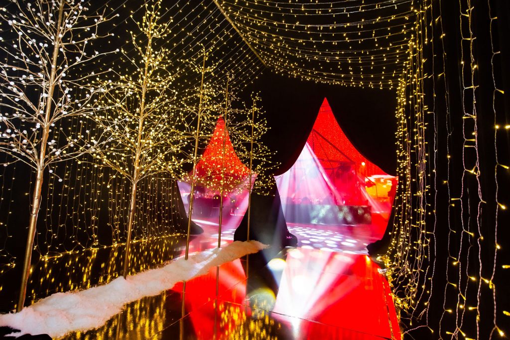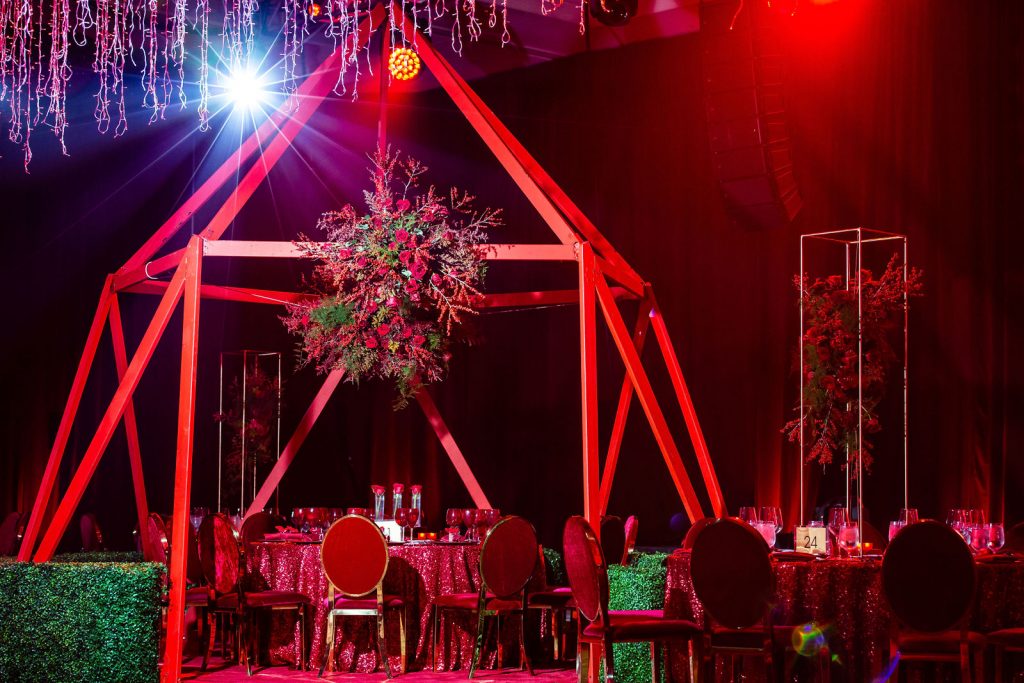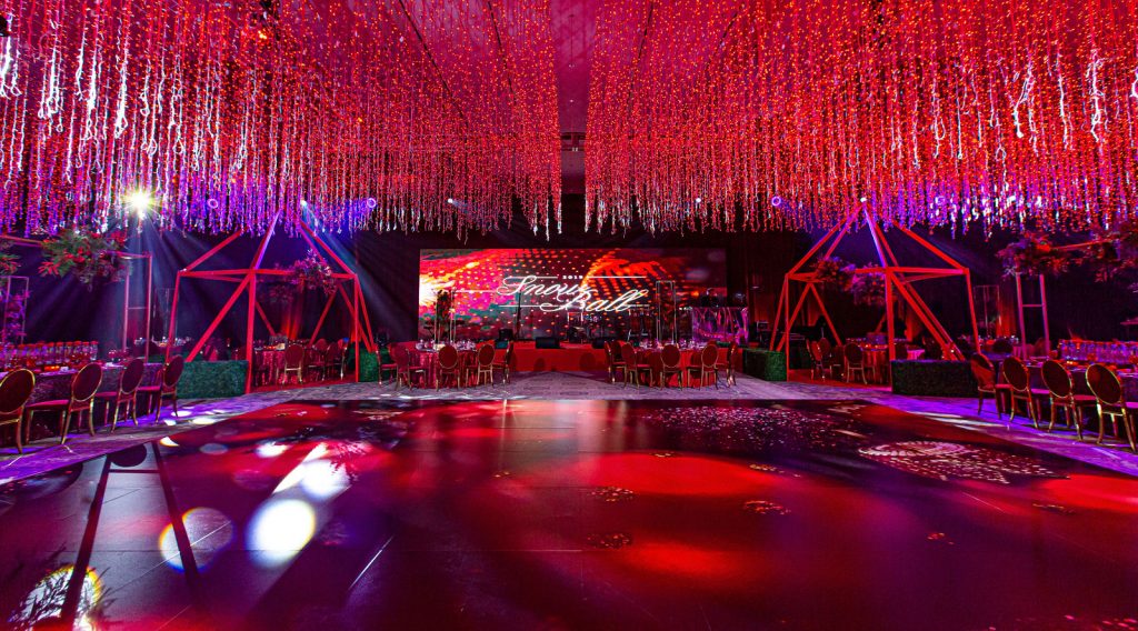 This year, WOW brought snow to sunny Miami for their 5th Annual Snowball Gala. Drawing inspiration from the festive holiday season, the team created an immersive winter wonderland experience for guests, complete with a tunnel of lights and a jaw-dropping ceiling of 390,000 red bulbs and 10,000 string lights.